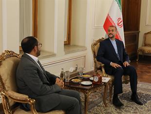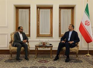 الصور التقى المتحدث باسم أنصار الله ورئیس الوفد المفاوض لحکومة الإنقاذ الوطنی الیمنیة محمد عبد السلام، خلال زیارته إلى طهران، وزیر الخارجیة