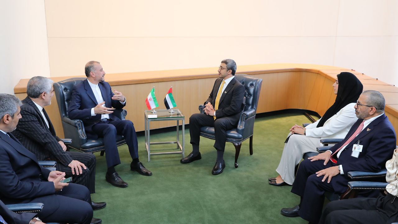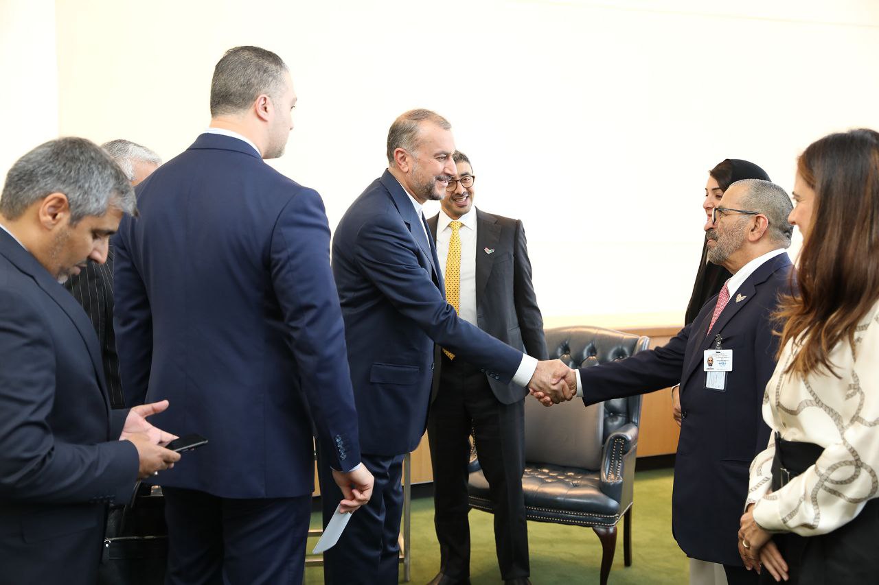 الصور وزیرا خارجیة إیران والإمارات یلتقیان فی نیویورک