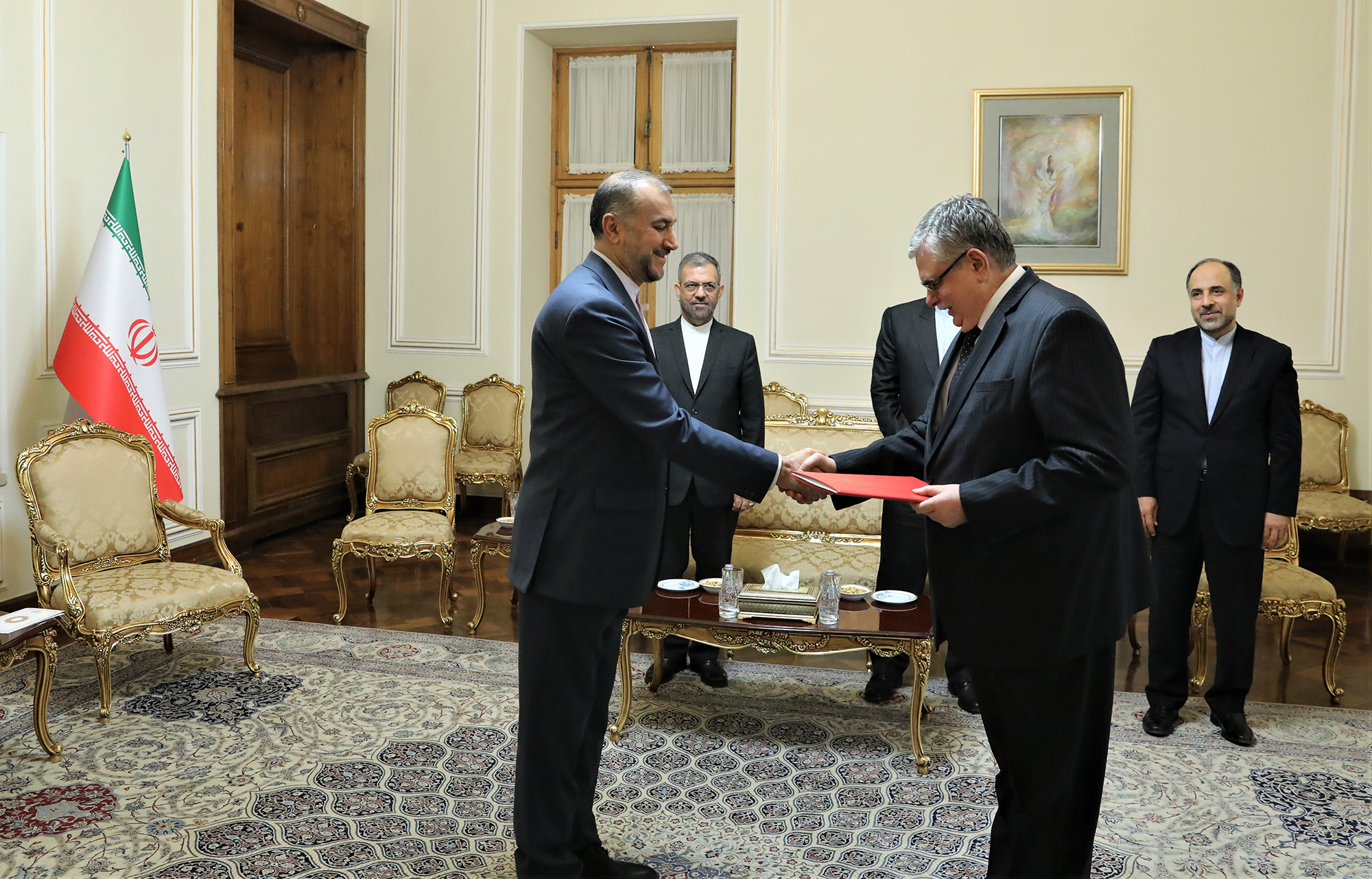 الصور التقى سفیر روسیا الاتحادیة الجدید فی ایران ألیکسی دی دوف، فی بدایة مهمته فی الجمهوریة الإسلامیة الإیرانیة، وزیر الخارجیة وقدم نسخة من أوراق اعتماده.