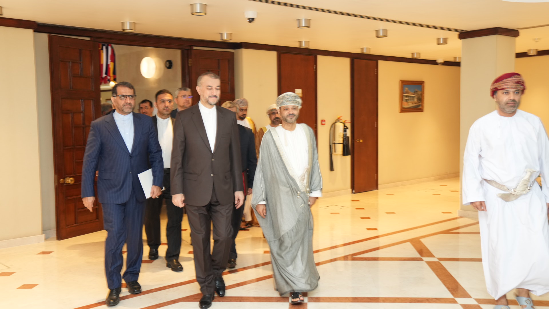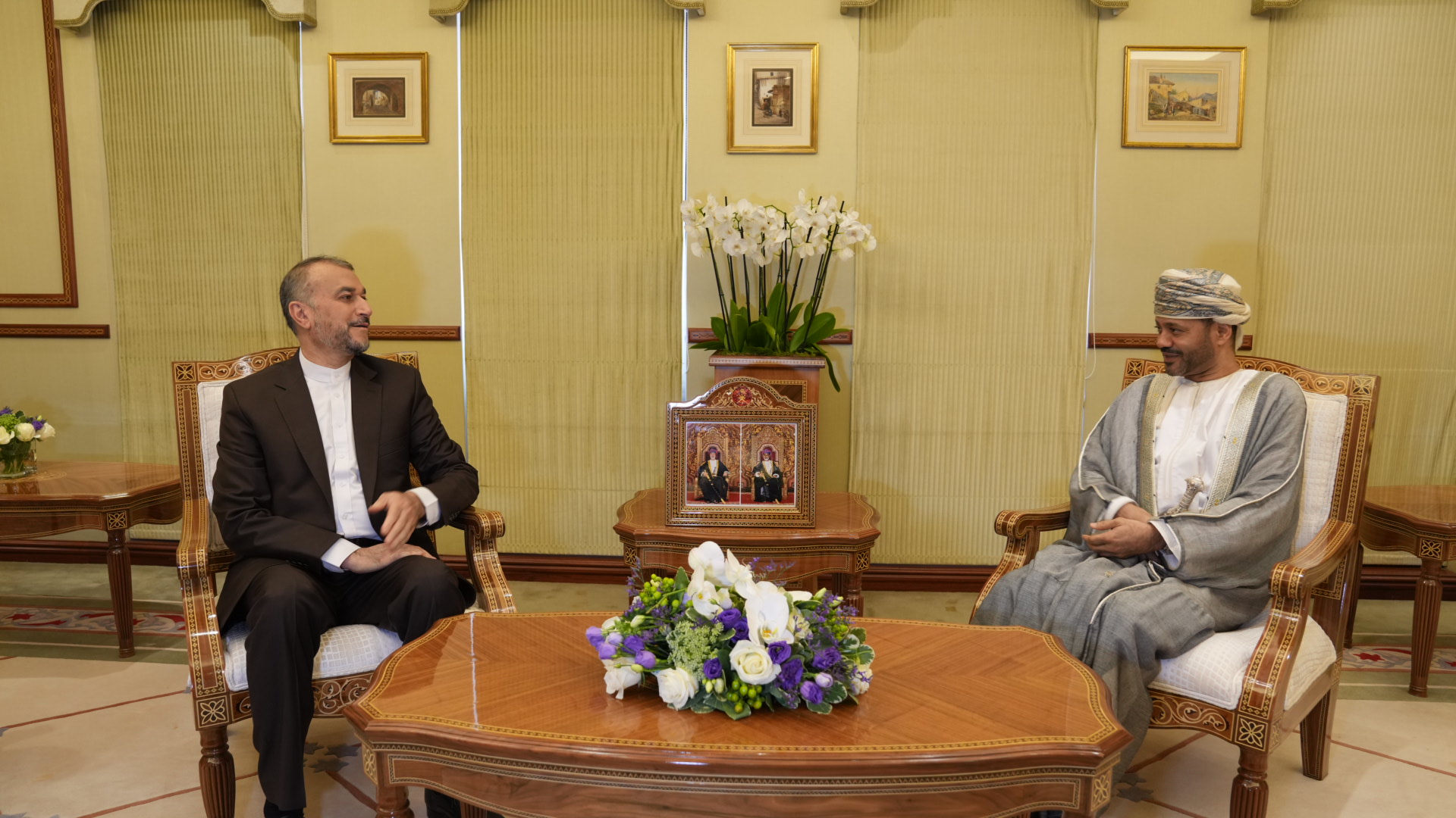التقى وزیر الخارجیة الدکتور حسین أمیرعبداللهیان، فی إطار زیارته إلى سلطنة عمان، نظیره العمانی السید بدر بن حمد البوسعیدی