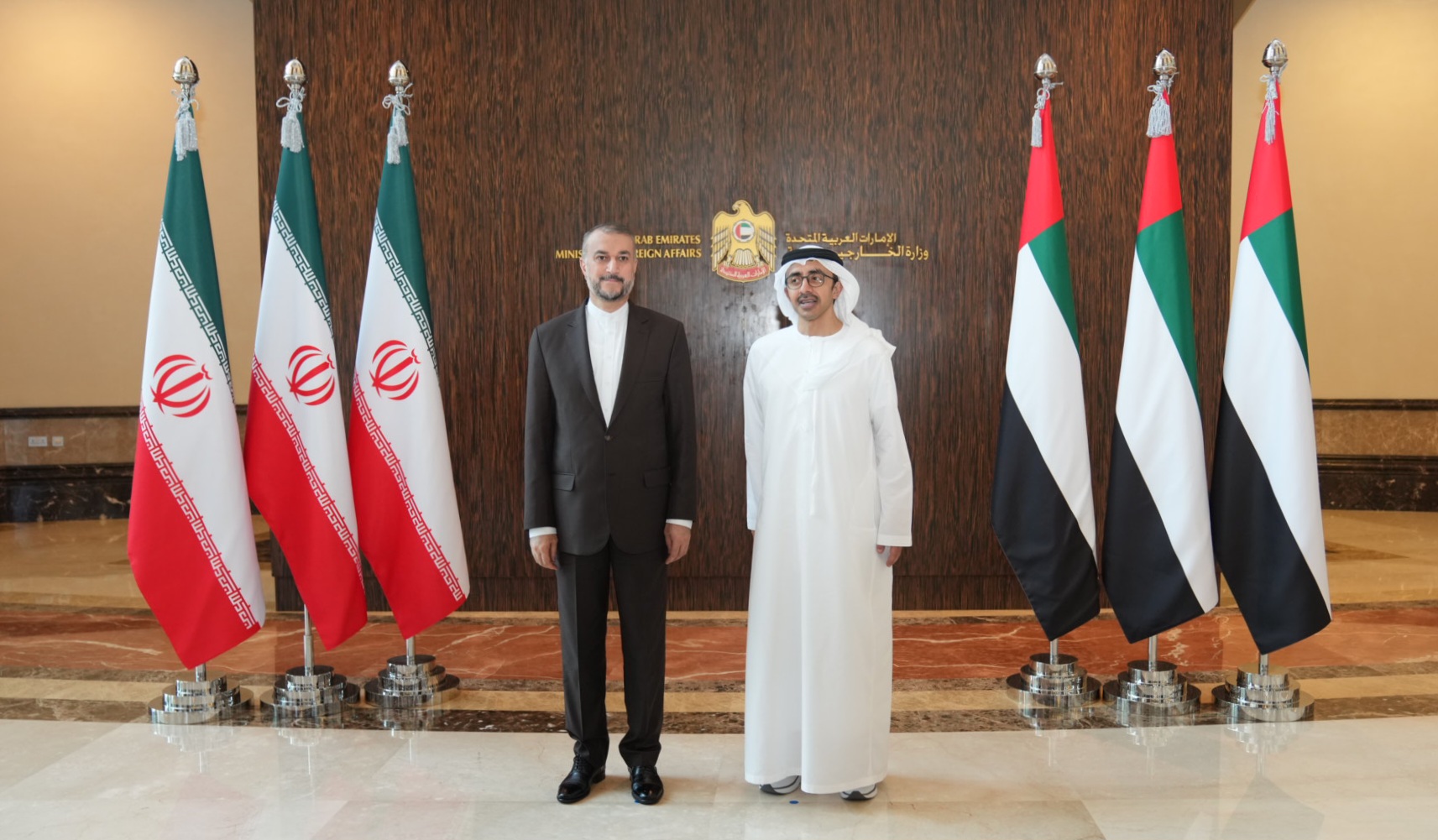 التقى وزیر الخارجیة الدکتور حسین أمیرعبداللهیان، وزیر خارجیة دولة الإمارات العربیة المتحدة الشیخ عبدالله بن زاید.