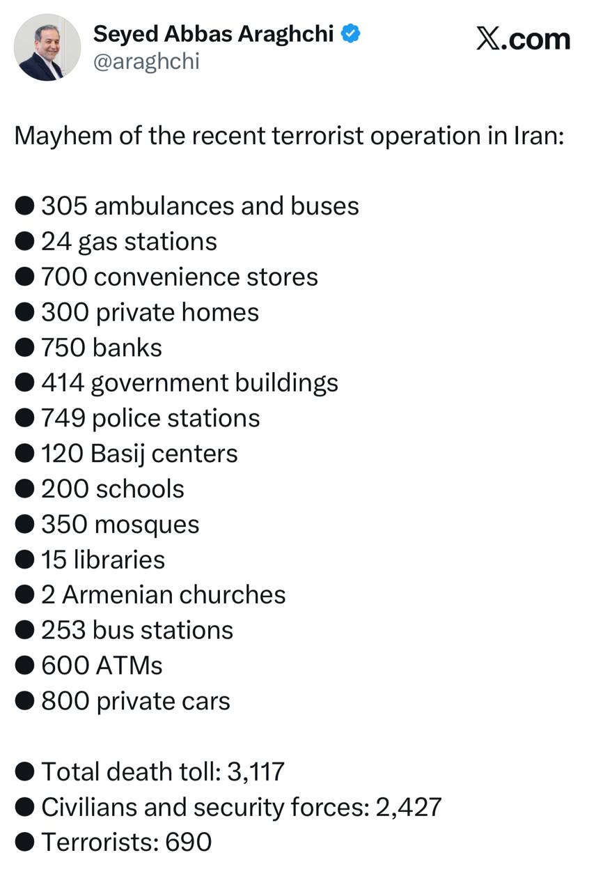 إحصائيات وزير الخارجية حول حجم الدمار والخسائر البشرية الناجمة عن العمليات الإرهابية الأخيرة، وذلك ردًّا على رسالة جي. دي. فانس، نائب الرئيس الأمريكي، التي قال فيها مخاطبًا المتظاهرين الأمريكيين: