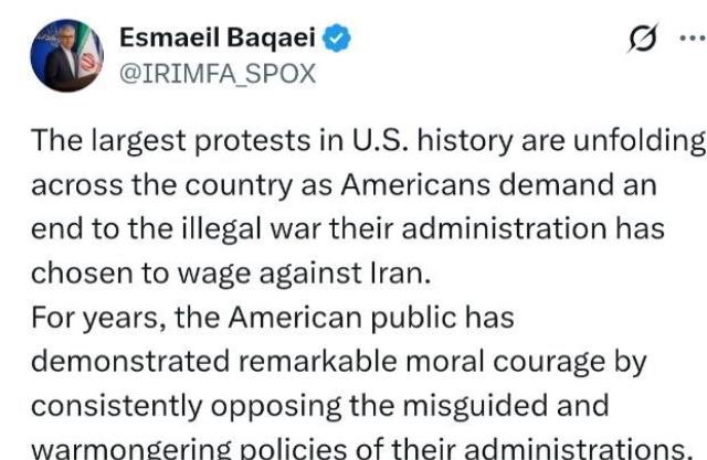 كتب المتحدث باسم وزارة الخارجية إسماعيل بقائي، في منشور على منصة إكس، رداً على تقارير وسائل الإعلام الأمريكية حول التناقص السريع في مخزون صواريخ توماهوك الأمريكية بسبب استخدامها المفرط في العدوان العسكري ضد إيران: