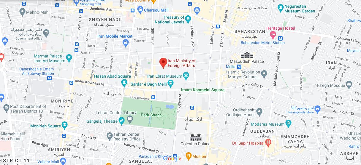 العنوان :ایران – طهران – ساحة الامام الخمینی ، شارع الامام الخمینی ،وزارة الخارجیة